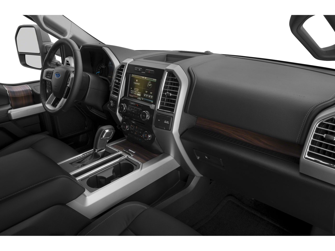 Step inside and experience the refined comfort of the Lariat's black, leather-trimmed bucket seats. Heated and cooled for year-round enjoyment, these seats also feature 10-way power adjustability and driver-side memory, allowing you to find your perfect driving position with ease.