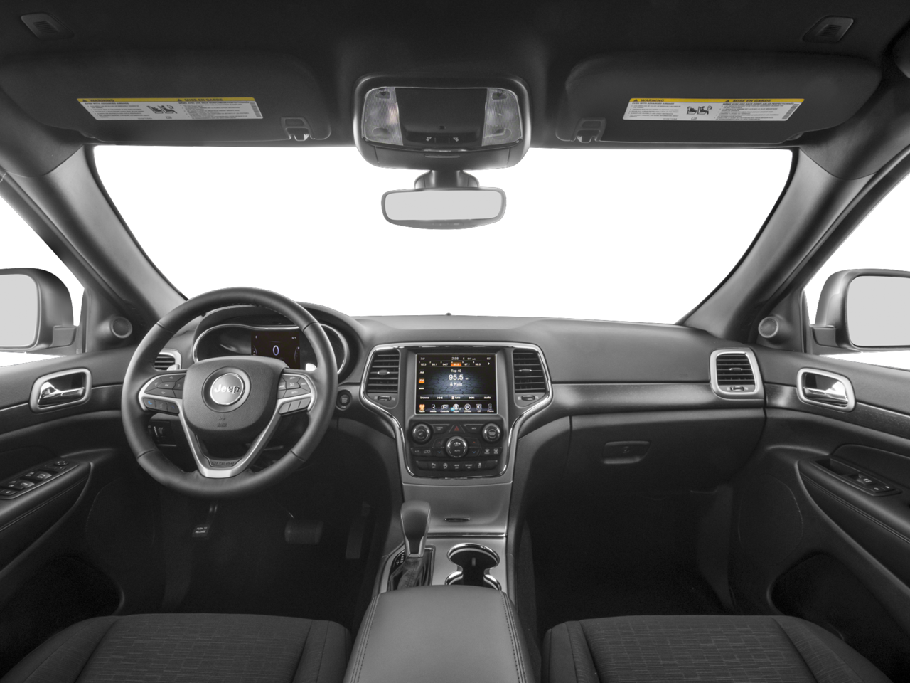 17" x 8.0" Aluminum Wheels, 3.45 Rear Axle Ratio, 4-Wheel Disc Brakes, 6 Speakers, ABS brakes, Air Conditioning, Alloy wheels, AM/FM radio, Anti-whiplash front head restraints, Automatic temperature control, Brake assist, Bright Side Roof Rails, Bumpers: body-color, Cloth Low-Back Bucket Seats, Compass, Delay-off headlights, Driver door bin, Driver vanity mirror, Dual front impact airbags, Dual front side impact airbags, Electronic Stability Control, Four wheel independent suspension, Front anti-roll bar, Front Bucket Seats, Front Center Armrest w/Storage, Front dual zone A/C, Front fog lights, Front reading lights, Fully automatic headlights, Heated door mirrors, Illuminated entry, Knee airbag, Leather Shift Knob, Low tire pressure warning, Normal Duty Suspension, Occupant sensing airbag, Outside temperature display, Overhead airbag, Overhead console, Panic alarm, ParkView Rear Back-Up Camera, Passenger door bin, Passenger vanity mirror, Power 4-Way Driver Lumbar Adjust, Power 8-Way Driver/Manual Passenger Seat, Power door mirrors, Power steering, Power windows, Quick Order Package 23E, Radio data system, Radio: Uconnect 3 w/5" Display, Rear anti-roll bar, Rear reading lights, Rear seat center armrest, Rear window defroster, Rear window wiper, Remote keyless entry, Speed control, Speed-Sensitive Wipers, Split folding rear seat, Spoiler, Steering wheel mounted audio controls, Tachometer, Telescoping steering wheel, Tilt steering wheel, Traction control, Trip computer, Variably intermittent wipers. Diamond Black Crystal Pearlcoat 2017 Jeep Grand Cherokee Laredo 4WD 8-Speed Automatic 3.6L V6 24V VVT