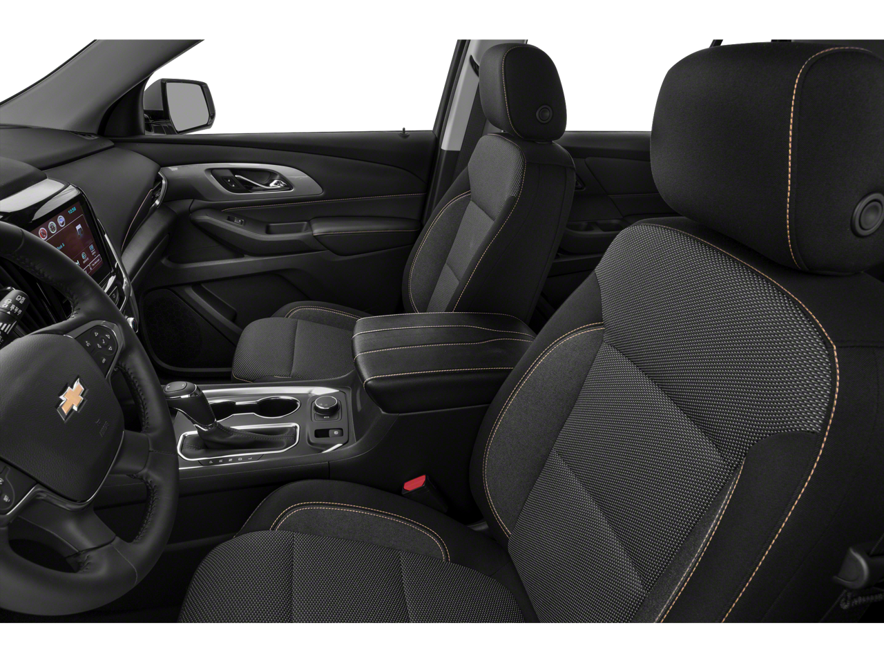 Step inside and be captivated by the Traverse's premium cloth seating, which provides exceptional comfort and support. The spacious cabin offers ample room for up to seven passengers, ensuring everyone can travel in comfort. Dual-zone automatic climate control allows you and your co-pilot to customize the temperature to your preferences, while the rear air conditioning keeps the whole family content.