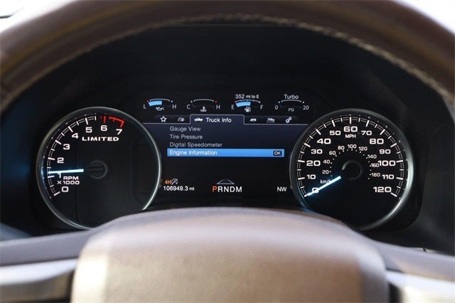 Certified. White 2020 Ford F-150 Limited 4WD 10-Speed Automatic 3.5L V6 EcoBoost Ford Blue Advantage: Blue Certified Certified, 4WD, Bluetooth® Hands Free Calling, 120-POINT FORD PRE-OWNED INSPECTION IN OUR CERTIFIED PRE-OWNED SERVICE DEPARTMENT, CLEAN CARFAX, BLUE ADVANTAGE FORD CERTIFIED COMPREHENSIVE COVERAGE IS PROVIDED FOR 3 MONTHS OR 4,000 MILES, 10 Speakers, 22 Polished Aluminum Wheels, Adjustable pedals, Auto tilt-away steering wheel, Auto-dimming door mirrors, Auto-dimming Rear-View mirror, Automatic temperature control, Bumpers: body-color, Class IV Trailer Hitch Receiver, Electronic Locking w/3.55 Axle Ratio, Engine Oil Cooler, Equipment Group 900A Base, Exterior Parking Camera Rear, Garage door transmitter, Genuine wood door panel insert, Heated door mirrors, Heated front seats, Heated rear seats, Memory seat, Navigation System, Pedal memory, Power moonroof, Pro Trailer Backup Assist, Radio: B&O Sound System by Bang & Olufsen, Rain sensing wipers, SiriusXM Radio, Steering wheel mounted audio controls, SYNC 3, Tailgate Step w/Tailgate Lift Assist, Telescoping steering wheel, Tilt steering wheel, Tough Bed Spray-In Bedliner, Trailer Tow Package, Upgraded Front Stabilizer Bar, Ventilated front seats, Voice-Activated Touchscreen Navigation, Wheel Well Liner.