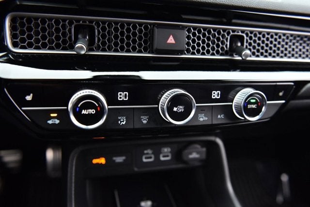 Step inside and be captivated by the premium features that elevate this Civic above the rest. The leather-trimmed seating surfaces, heated front seats, and power-adjustable driver's seat offer unparalleled comfort. The dual-zone automatic climate control, rear defroster, and power moonroof add to the overall ambiance, creating a truly luxurious driving environment.