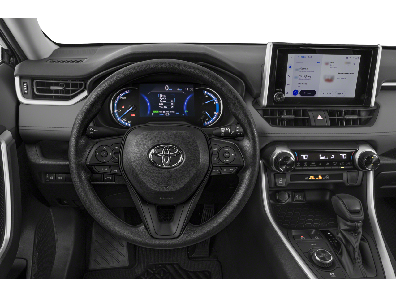 3 Spoke Leather Steering Wheel, 4-Wheel Disc Brakes, 6 Speakers, ABS brakes, Air Conditioning, All Weather Floor Liners & Cargo Tray (TMS), Alloy wheels, AM/FM radio: SiriusXM, Anti-Theft System, Auto High-beam Headlights, Automatic temperature control, Axle Ratio: TBD, Brake assist, Bumpers: body-color, Delay-off headlights, Door Edge Guard (TMS), Driver door bin, Driver Seat w/2-Position Memory Function, Driver vanity mirror, Dual front impact airbags, Dual front side impact airbags, Electronic Stability Control, Emergency communication system: Safety Connect (1-year trial), Exterior Parking Camera Rear, Fog Light Accent (TMS), Four wheel independent suspension, Front anti-roll bar, Front Bucket Seats, Front Center Armrest, Front Door Smart Key System w/Push Button Start, Front dual zone A/C, Front fog lights, Front reading lights, Front Seat Heating, Front Sport Seats, Fully automatic headlights, Heated 3-Spoke Leather Steering Wheel, Heated door mirrors, Illuminated entry, Knee airbag, Lane Departure Warning System, Leather Shift Knob, Low tire pressure warning, Occupant sensing airbag, Outside temperature display, Overhead airbag, Overhead console, Panic alarm, Passenger door bin, Passenger vanity mirror, Power door mirrors, Power driver seat, Power Liftgate, Power moonroof, Power steering, Power windows, Radio data system, Radio: AM/FM/XM Audio System, Rear anti-roll bar, Rear seat center armrest, Rear window defroster, Rear window wiper, Remote keyless entry, SofTex Seat Trim, Speed control, Speed-sensing steering, Split folding rear seat, Spoiler, Steering wheel mounted audio controls, Telescoping steering wheel, Tilt & Slide Moon Roof, Tilt steering wheel, Traction control, Trip computer, Turn signal indicator mirrors, Variably intermittent wipers, Wheels: 18" x 7.0J 5-Spoke Sport Alloy, XLE Premium Grade Weather Package, XLE Premium Package. CARFAX One-Owner. Clean CARFAX. Blue 2023 Toyota RAV4 Hybrid XLE Premium AWD eCVT 2.5L 4-Cylinder