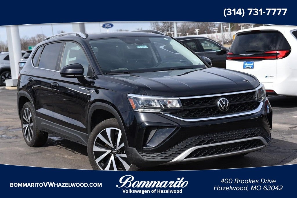 CARFAX One-Owner. Certified. Deep Black 2023 Volkswagen Taos 1.5T SE FWD 8-Speed Automatic with Tiptronic 1.5L I4 Turbocharged DOHC 16V LEV3-SULEV30 158hp VW Pre-Owned Certified Vehicle, Volkswagen Certified Pre-Owned Certified, 3.23 Axle Ratio, 4-Wheel Disc Brakes, 6 Speakers, ABS brakes, Active Blind Spot Monitor, Air Conditioning, Alloy wheels, AM/FM radio: SiriusXM with 360L, Auto High-beam Headlights, Brake assist, Bumpers: body-color, Chrome Bumperdillo Protection Plate for Rear Bumper, CloudTex & Cloth Seating Surfaces, Compass, Delay-off headlights, Driver door bin, Driver vanity mirror, Dual front impact airbags, Dual front side impact airbags, Electronic Stability Control, Emergency communication system: VW Car-Net Safe & Secure 5-year, Exterior Parking Camera Rear, First Aid Kit, Front anti-roll bar, Front Bucket Seats, Front Center Armrest, Front reading lights, Front Strut Rear Torsion Beam Suspension, Front wheel independent suspension, Fully automatic headlights, Heated door mirrors, Heated Front Comfort Seats, Heated front seats, Heated steering wheel, Illuminated entry, Leather Shift Knob, Low tire pressure warning, Occupant sensing airbag, Outside temperature display, Overhead airbag, Overhead console, Panic alarm, Panoramic Sunroof Package, Passenger door bin, Passenger vanity mirror, Power door mirrors, Power driver seat, Power steering, Power windows, Radio data system, Radio: MIB3 Composition Media AM/FM/HD, Rain sensing wipers, Rear anti-roll bar, Rear seat center armrest, Rear Sensors Credit, Rear window defroster, Rear window wiper, Remote keyless entry, Roadside Assistance Kit, Roof rack: rails only, Rubber Mats Kit (SNM), Security system, Speed control, Speed-sensing steering, Split folding rear seat, Spoiler, Steering wheel mounted audio controls, Tachometer, Telescoping steering wheel, Tilt steering wheel, Traction control, Trip computer, Variably intermittent wipers, Wheels: 18" 2-Tone Machined Alloy. Odometer is 3955 miles below market average!
