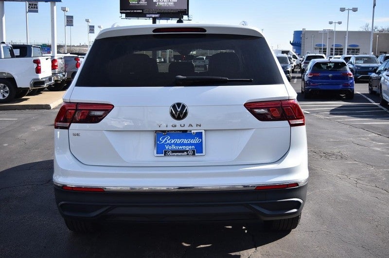 CARFAX One-Owner. Clean CARFAX. Certified. Opal White Pearl 2023 Volkswagen Tiguan 2.0T SE FWD 8-Speed Automatic with Tiptronic 2.0L TSI DOHC Volkswagen Certified Pre-Owned Certified, 3-Row Rubber Monster Mats w/Logo Kit (Set of 5), 3.33 Axle Ratio, 3rd row seats: bench, 4-Wheel Disc Brakes, 4-Wheel Independent Suspension, 6 Speakers, ABS brakes, Air Conditioning, Alloy wheels, AM/FM radio: SiriusXM with 360L, Auto-dimming Rear-View mirror, Auto-Dimming Rearview Mirror w/Compass/HomeLink (DISC), Automatic temperature control, Brake assist, Bumpers: body-color, Cargo Area Retractable Privacy Cover, Compass, Delay-off headlights, Driver door bin, Driver vanity mirror, Dual front impact airbags, Dual front side impact airbags, Electronic Stability Control, Emergency communication system: VW Car-Net Safe & Secure 5-year, Exterior Parking Camera Rear, First Aid Kit, Four wheel independent suspension, Front anti-roll bar, Front Bucket Seats, Front Center Armrest, Front dual zone A/C, Front reading lights, Fully automatic headlights, Heated door mirrors, Heated Front Comfort Seats, Heated front seats, Heavy Duty Trunk Liner w/VW CarGo Blocks, Illuminated entry, Leather Shift Knob, Low tire pressure warning, Occupant sensing airbag, Outside temperature display, Overhead airbag, Overhead console, Panic alarm, Passenger door bin, Passenger vanity mirror, Perforated V-Tex Leatherette Seating Surfaces, Power door mirrors, Power driver seat, Power Liftgate, Power steering, Power windows, Radio data system, Radio: MIB3 Composition Media AM/FM/HD, Rain sensing wipers, Rear anti-roll bar, Rear reading lights, Rear seat center armrest, Rear window defroster, Rear window wiper, Remote keyless entry, Roadside Assistance Kit, Security system, Speed control, Speed-sensing steering, Split folding rear seat, Spoiler, Steering wheel mounted audio controls, Tachometer, Telescoping steering wheel, Tilt steering wheel, Traction control, Trip computer, Turn signal indicator mirrors, Variably intermittent wipers, Wheels: 18" Dark Graphite Painted 10-Spoke Alloy. Recent Arrival! Odometer is 15374 miles below market average!