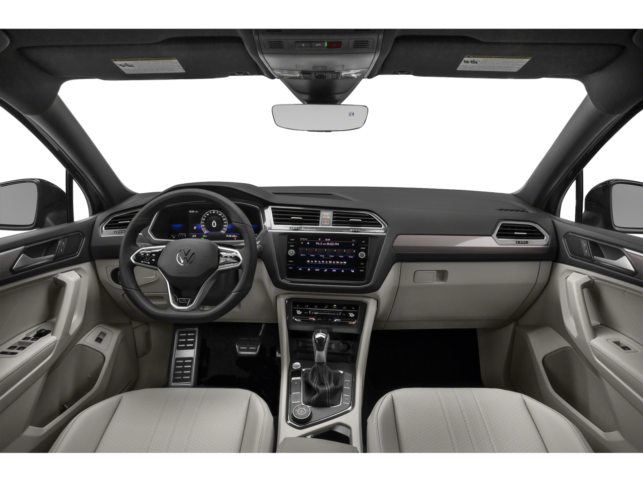 CARFAX One-Owner. Clean CARFAX. Certified. Platinum Gray Metallic 2023 Volkswagen Tiguan 2.0T SE R-Line Black FWD 8-Speed Automatic with Tiptronic 2.0L TSI DOHC Volkswagen Certified Pre-Owned Certified, 3-Row Rubber Monster Mats w/Logo Kit (Set of 5), 3.33 Axle Ratio, 3rd row seats: bench, 4-Wheel Disc Brakes, 4-Wheel Independent Suspension, 6 Speakers, ABS brakes, Air Conditioning, Alloy wheels, AM/FM radio: SiriusXM with 360L, Auto-dimming Rear-View mirror, Auto-Dimming Rearview Mirror w/Compass/HomeLink (DISC), Automatic temperature control, Brake assist, Bumpers: body-color, Cargo Area Retractable Privacy Cover, Compass, Credit - Power Rear Liftgate Removed, Credit - Steering Wheel Substitution, Delay-off headlights, Driver door bin, Driver vanity mirror, Dual front impact airbags, Dual front side impact airbags, Electronic Stability Control, Emergency communication system: VW Car-Net Safe & Secure 5-year, Exterior Parking Camera Rear, First Aid Kit, Four wheel independent suspension, Front anti-roll bar, Front Bucket Seats, Front Center Armrest, Front dual zone A/C, Front reading lights, Fully automatic headlights, Heated door mirrors, Heated Front Comfort Seats, Heated front seats, Heavy Duty Trunk Liner w/VW CarGo Blocks, Illuminated entry, Leather Shift Knob, Leather steering wheel, Low tire pressure warning, Occupant sensing airbag, Outside temperature display, Overhead airbag, Overhead console, Panic alarm, Passenger door bin, Passenger vanity mirror, Perforated V-Tex Leatherette Seating Surfaces, Power door mirrors, Power driver seat, Power Liftgate, Power moonroof, Power steering, Power windows, Radio data system, Radio: MIB3 Composition Media AM/FM/HD, Rain sensing wipers, Rear anti-roll bar, Rear reading lights, Rear seat center armrest, Rear window defroster, Rear window wiper, Remote keyless entry, Roadside Assistance Kit, Roof Rack Base Carrier Bars (Set of 2), Security system, Speed control, Speed-sensing steering, Split folding rear seat, Spoiler, Sport steering wheel, Steering wheel mounted audio controls, Tachometer, Telescoping steering wheel, Tilt steering wheel, Traction control, Trip computer, Turn signal indicator mirrors, Variably intermittent wipers, Wheels: 19" Black Painted Twin 5-Spoke Alloy.