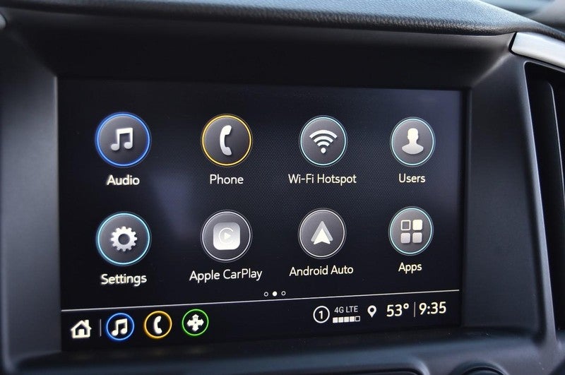 - Audio system, 8" diagonal GMC Infotainment System includes multi-touch display, AM/FM/SiriusXM stereo, Bluetooth® streaming audio for music and most phones, Android Auto and Apple CarPlay capability for compatible phones, advanced voice recognition, in-vehicle apps, personalized profiles for infotainment and vehicle settings