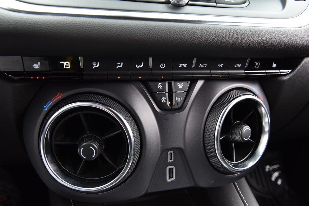 CARFAX One-Owner. Clean CARFAX. Black 2025 Chevrolet Blazer LT AWD 9-Speed Automatic with Overdrive 2.0L Turbocharged Accident Free CarFax, One Owner, Non Smoker, AWD, 170 Amp Alternator, 3.47 Final Drive Axle Ratio, 4-Way Manual Front Passenger Seat Adjuster, 4-Wheel Disc Brakes, 6 Speakers, 6-Speaker Audio System Feature, 8-Way Power Driver Seat Adjuster, ABS brakes, Air Conditioning, Alloy wheels, AM/FM radio: SiriusXM with 360L, Apple CarPlay/Android Auto, Auto High-beam Headlights, Automatic temperature control, Brake assist, Bumpers: body-color, Child-Seat-Sensing Airbag, Compass, Delay-off headlights, Driver door bin, Driver vanity mirror, Dual front impact airbags, Dual front side impact airbags, Electronic Stability Control, Emergency communication system: OnStar and Chevrolet connected services capable, Four wheel independent suspension, Front anti-roll bar, Front Bucket Seats, Front Center Armrest, Front dual zone A/C, Front reading lights, Fully automatic headlights, Heated door mirrors, Heated Driver and Front Passenger Seats, Heated front seats, Illuminated entry, Knee airbag, Leather Shift Knob, Low tire pressure warning, Occupant sensing airbag, Outside temperature display, Overhead airbag, Overhead console, Panic alarm, Passenger door bin, Passenger vanity mirror, Power door mirrors, Power Driver Lumbar Control, Power driver seat, Power steering, Power windows, Preferred Equipment Group 2LT, Premium audio system: Chevrolet Infotainment 3 Plus, Premium Cloth Seat Trim, Radio data system, Radio: Chevrolet Infotainment 3 Plus System, Rear anti-roll bar, Rear reading lights, Rear seat center armrest, Rear window defroster, Rear window wiper, Remote keyless entry, Ride and Handling Suspension, Security system, SiriusXM with 360L, Speed control, Speed-sensing steering, Split folding rear seat, Spoiler, Steering wheel mounted audio controls, Stop-Start Engine Control System, Tachometer, Telescoping steering wheel, Tilt steering wheel, Traction control, Trip computer, Variably intermittent wipers, Voltmeter, Wheels: : 18" Grazen Metallic Aluminum, AWD.