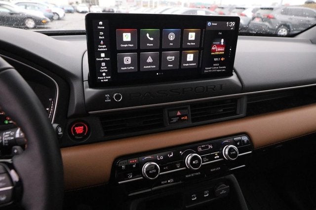 CARFAX One-Owner. Clean CARFAX. 2026 Honda Passport TrailSport Elite Black AWD 10-Speed Automatic 3.5L V6 DOHC 24V 12 Speakers, 4-Wheel Disc Brakes, ABS brakes, Adaptive Cruise Control: Adaptive Cruise Control (ACC) with Low-Speed Follow, Air Conditioning, Alloy wheels, Apple CarPlay/Android Auto, Auto High-beam Headlights, Auto-dimming door mirrors, Auto-dimming Rear-View mirror, Automatic temperature control, Blind Spot Information (BSI) System warning, Brake assist, Compass, Delay-off headlights, Driver door bin, Driver vanity mirror, Driver's Seat Mounted Armrest, Dual front impact airbags, Dual front side impact airbags, Electronic Stability Control, Emergency communication system: HondaLink, Exterior Parking Camera Rear, Four wheel independent suspension, Front anti-roll bar, Front Bucket Seats, Front Center Armrest, Front dual zone A/C, Front fog lights, Front reading lights, Fully automatic headlights, Heated door mirrors, Heated front seats, Heated rear seats, Heated steering wheel, HVAC memory, Illuminated entry, Knee airbag, Lane departure: Lane Keeping Assist System (LKAS) active, Leather steering wheel, Low tire pressure warning, Memory seat, Navigation system: Google Maps, Occupant sensing airbag, Outside temperature display, Overhead airbag, Overhead console, Panic alarm, Passenger door bin, Passenger seat mounted armrest, Passenger vanity mirror, Perforated Leather Seat Trim, Power door mirrors, Power driver seat, Power Liftgate, Power moonroof, Power passenger seat, Power steering, Power windows, Radio data system, Rain sensing wipers, Rear air conditioning, Rear anti-roll bar, Rear reading lights, Rear seat center armrest, Rear window defroster, Rear window wiper, Remote keyless entry, Security system, Speed control, Speed-sensing steering, Split folding rear seat, Spoiler, Steering wheel mounted audio controls, Tachometer, Telescoping steering wheel, Tilt steering wheel, Traction control, Trip computer, Turn signal indicator mirrors, Variably intermittent wipers, Ventilated front seats, Wheels: 18" Berlina Black Machine Face Alloy.
